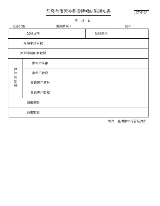 臺灣集中保管結算所股份有限公司辦理帳簿劃撥配發有價證券作業配合事項